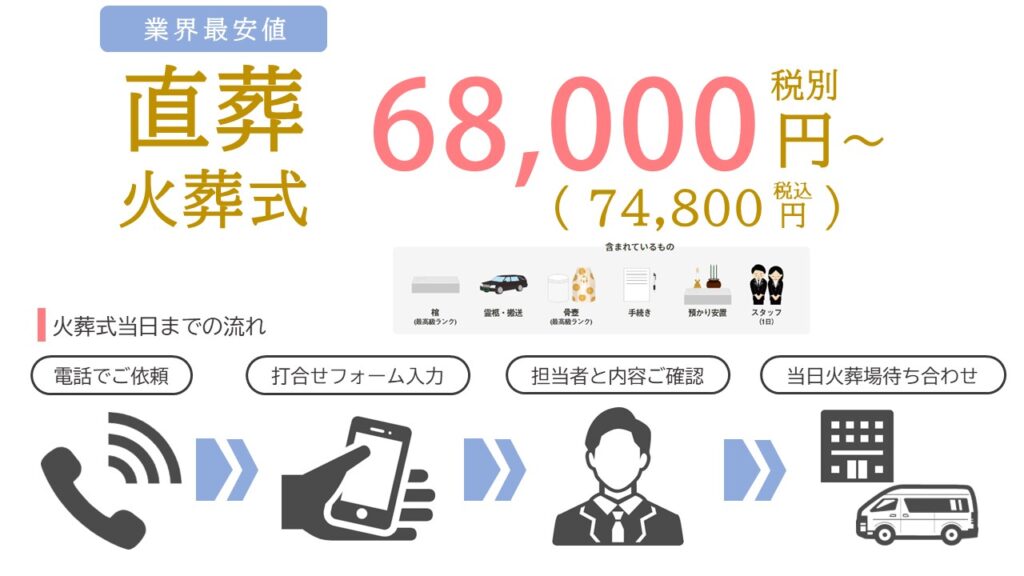 ご逝去ー火葬式当日までの流れ【68,000円特別プラン】